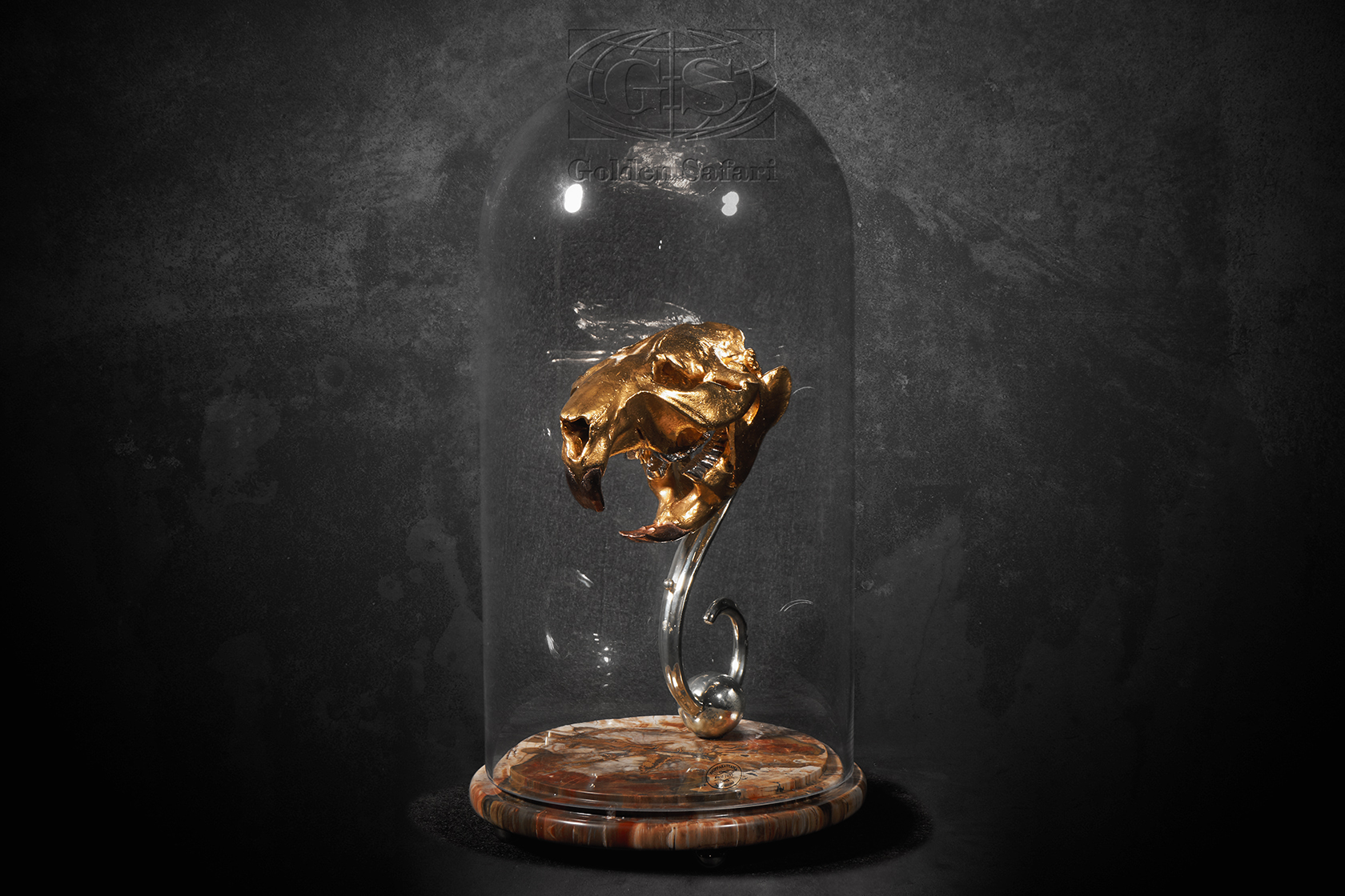 Код изделия / Item code ................................................. 1.1.03.001.0001.4670 Количество скульптур в серии / Number of sculptures in the series .............. 1 Материал / Material ................................................................................ Ag .925° Вес / The weight .................................................................................... 230,11 г/g Черепная часть скульптуры покрыта золотом ..................................... Au .999° Gold-plating of the cranial part of sculpture ......................................... Au .999° Медальон выполнен из окаменелого дерева Pedestal: Petrified wood